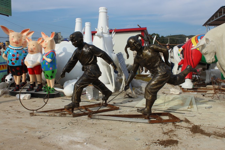玻璃鋼兒童推圈景觀觀賞雕塑