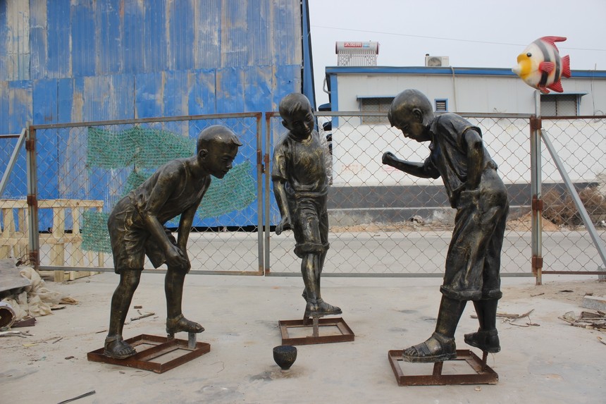 玻璃鋼兒童抽陀螺觀賞景觀雕塑