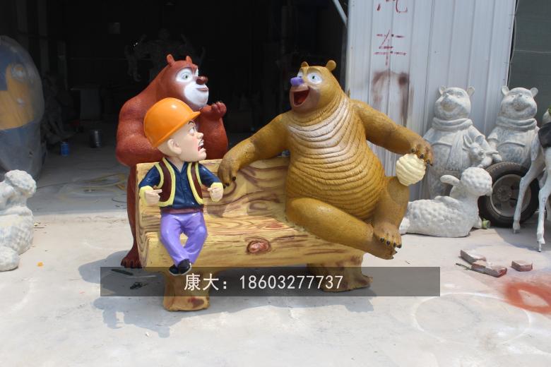 玻璃鋼卡通彩繪動(dòng)漫熊出沒(méi)座椅雕塑擺件