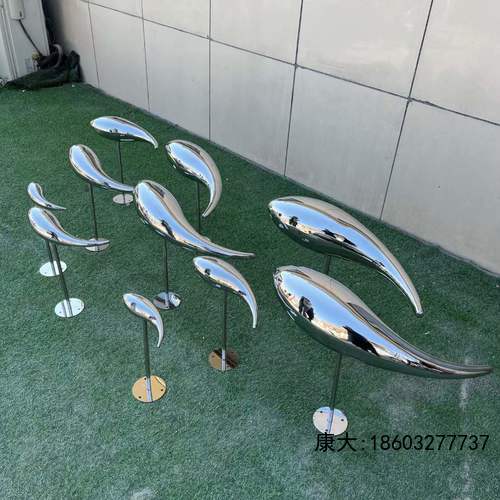 戶外不銹鋼鏡面小魚群雕塑抽象擺件售樓酒店水池景觀藝術(shù)墻裝飾品不銹鋼鏡面魚群雕塑的象征意義:魚兒在水中自由自在的遨游,代表著自由。“魚”與“余”諧音,所以魚象征著富貴。我國民俗歲末祭祖中講究供魚,取年年有余魚之吉利,則是對魚的一種圖騰崇拜。 我們經(jīng)常在一些廣場上、公園里能看見魚雕塑,這些魚雕塑可供人們觀賞,魚雕塑的象征意義很強(qiáng)。如果在海邊看到這個作品,它會震撼你的視覺,因?yàn)榇蠛>驮谘矍,盡管有不靠譜的心理潛意識,但是它會讓你感受到魚群的生態(tài)之美。 不銹鋼魚群雕塑與水景的結(jié)合能豐富水景的表現(xiàn)形式,營造優(yōu)美的景觀環(huán)境,提升水景的文化層次。人們喜歡賞水、親水、玩水,創(chuàng)作水景景觀,就要滿足人們的需求,滿足環(huán)境的需要。二者結(jié)合應(yīng)用意義非凡,應(yīng)用前景廣泛。 不銹鋼魚雕塑美觀度高不銹鋼本身具有光澤,具有很高的美觀度。表面拉絲效果,若再加上各種顏色,使得抽象不銹鋼魚雕塑熠熠生輝、閃閃發(fā)亮,很是賞心悅目。
