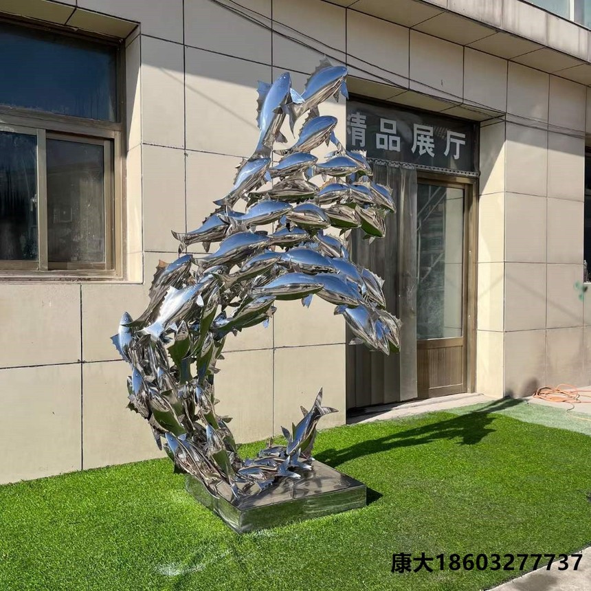 戶外不銹鋼魚群雕塑定制現(xiàn)代金屬鏡面小魚動(dòng)物酒店水景藝術(shù)品擺件不銹鋼鏡面魚群雕塑的象征意義:魚兒在水中自由自在的遨游,代表著自由。“魚”與“余”諧音,所以魚象征著富貴。我國(guó)民俗歲末祭祖中講究供魚,取年年有余魚之吉利,則是對(duì)魚的一種圖騰崇拜。 我們經(jīng)常在一些廣場(chǎng)上、公園里能看見魚雕塑,這些魚雕塑可供人們觀賞,魚雕塑的象征意義很強(qiáng)。如果在海邊看到這個(gè)作品,它會(huì)震撼你的視覺,因?yàn)榇蠛>驮谘矍,盡管有不靠譜的心理潛意識(shí),但是它會(huì)讓你感受到魚群的生態(tài)之美。 不銹鋼魚群雕塑與水景的結(jié)合能豐富水景的表現(xiàn)形式,營(yíng)造優(yōu)美的景觀環(huán)境,提升水景的文化層次。人們喜歡賞水、親水、玩水,創(chuàng)作水景景觀,就要滿足人們的需求,滿足環(huán)境的需要。二者結(jié)合應(yīng)用意義非凡,應(yīng)用前景廣泛。 不銹鋼魚雕塑美觀度高不銹鋼本身具有光澤,具有很高的美觀度。表面拉絲效果,若再加上各種顏色,使得抽象不銹鋼魚雕塑熠熠生輝、閃閃發(fā)亮,很是賞心悅目。