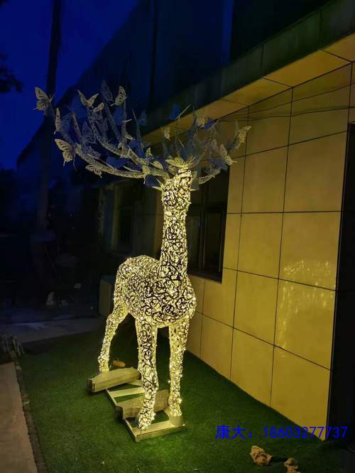 不銹鋼鏤空鹿雕塑戶外創(chuàng)意鐵藝擺件定制發(fā)光廣場公園草坪藝術(shù)景觀在雕塑行業(yè)中,鹿這個元素可以說是很常見的,不銹鋼鹿之所以成為雕塑界常見的素材,就是因?yàn)樗麄冊谥袊膫鹘y(tǒng)文化中有著美好的文化寓意。古代漢族人民認(rèn)為鹿是一種神物,是人升仙時的乘騎。人們將其多用于裝飾紋樣。 中國很早出現(xiàn)鹿紋是在商代,以后各代屢有發(fā)展變化,各具時代特征,不銹鋼鹿其造型豐富多彩,寓意吉祥,應(yīng)用廣泛,既是深受國人喜愛,更體現(xiàn)了人們對美好生活的追求和向往。 不銹鋼鹿文化的重要方面是其觀賞性。性情溫順形象秀麗,尤其是鹿更受人們的喜愛。在古代只有王室權(quán)貴才能觀賞鹿,自然是一種的享受。 不銹鋼鹿常用于城市廣場、園林景觀、公園、房地產(chǎn)、商業(yè)街、步行街、企業(yè)園區(qū)、景區(qū)等室內(nèi)、外環(huán)境景觀擺件。不銹鋼抽象鹿雕塑與所在空間的大小、尺度要有恰當(dāng)?shù)谋壤,并需要考慮不銹鋼鹿雕塑本身的朝向、色彩以及與背景的關(guān)系,使不銹鋼鹿雕塑與園林環(huán)境互為襯托,相得益彰。