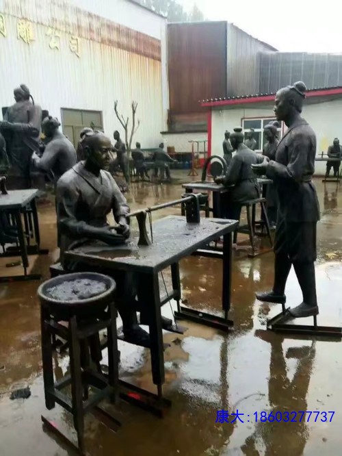 鑄銅古代人物雕塑街頭民俗小品文化景點(diǎn)區(qū)步行商業(yè)街情景主題雕塑每個(gè)時(shí)期的鑄銅人物雕塑都是具有當(dāng)時(shí)時(shí)代的特點(diǎn),其實(shí)很多城市中使用到的雕塑也都是人物類型,這樣可以更真摯的表達(dá)情感,也能夠讓我們看到不同類型的設(shè)計(jì)效果和工藝品位。 鑄銅雕塑在城市中的地位舉足輕重,不僅是園林會(huì)使用到,幾乎城市的每一個(gè)角落都有類似的雕塑,裝點(diǎn)了我們的城市,也讓每一個(gè)城市都擁有了自己的靈魂。近幾年,在我們生活的大街小巷中出現(xiàn)了越來(lái)越多的現(xiàn)代人物鑄銅雕塑。 人物鑄銅雕塑小品的裝飾性能夠提高園林的觀賞價(jià)值,滿足人們的審美要求,給人以藝術(shù)的享受和美感。人物鑄銅雕塑小品作為工藝品,本身就具有審美價(jià)值,由于其造型、色彩、尺度再加上合理布局,本身就是城市一景。 人物鑄銅雕塑悄無(wú)聲息地走進(jìn)了商業(yè)景觀中,人物鑄銅雕塑醒目有趣,吸引眼球的同時(shí),有助于活躍商業(yè)街的氛圍。
